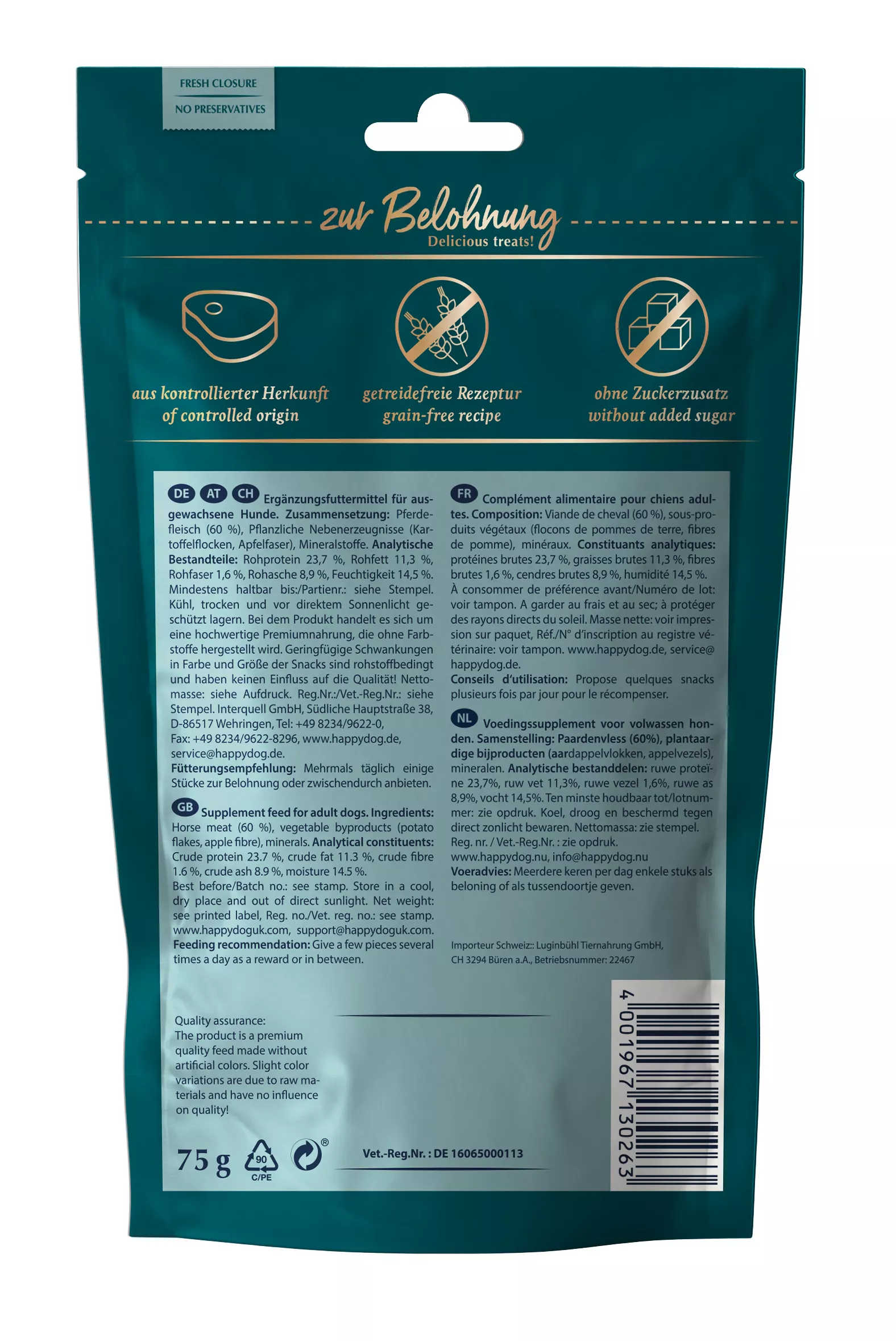 vielleicht unsere Meat Snacks mit Pferd etwas für ihn! Belohne deinen Liebling