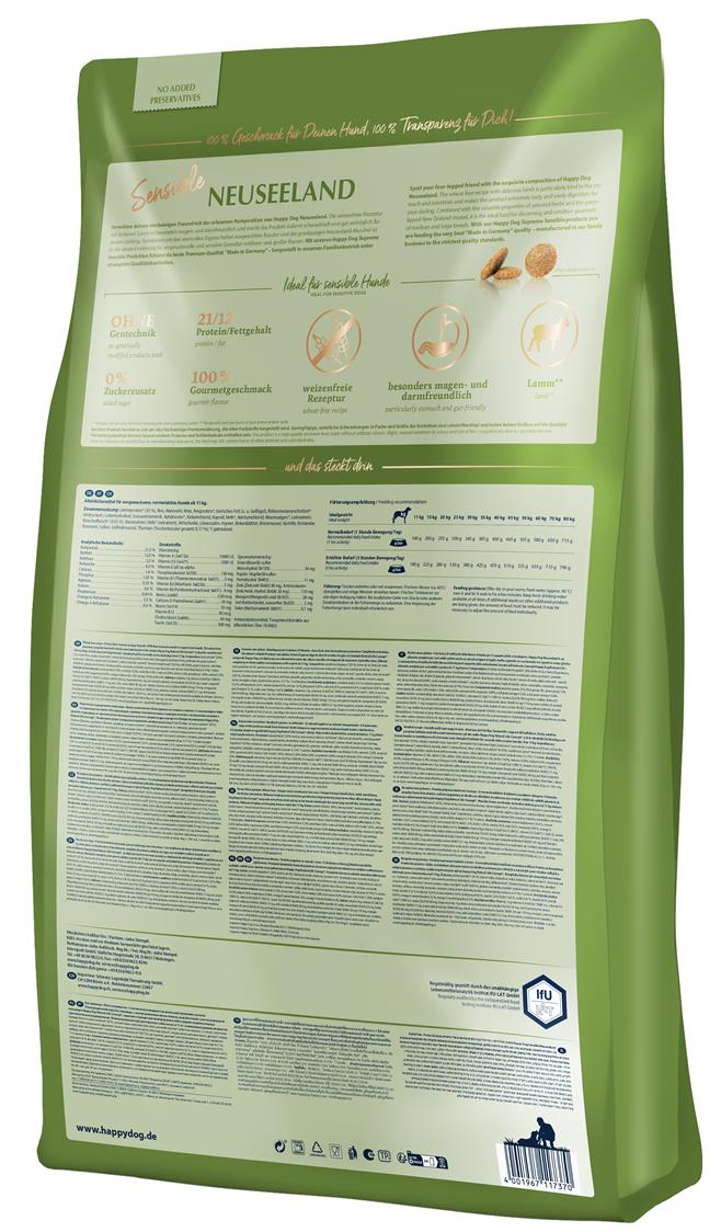 Besonders magen- und darmfreundlich mit erlesenem Lamm Biete deinem vierbeinigen Freund ein Geschmackshighlight mit der bekömmlichen Komposition von Happy Dog Neuseeland.