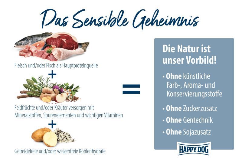 Verwöhne deinen vierbeinigen Freund mit der einzigartig bekömmlichen Komposition von Happy Dog Mini Africa. Die getreidefreie Rezeptur mit delikatem Strauß ist besonders gut verträglich für deinen Liebling und daher auch ideal geeignet für anspruchsvolle und ernährungssensible Feinschmecker kleiner Rassen. Wertvolle Omega-3- und Omega-6-Fettsäuren – als Unterstützung für ein glänzendes Fell – runden diese exklusive Rezeptur, die auf dem einzigartigen Happy Dog Natural Life Concept® basiert, ab. Mit unseren Happy Dog Supreme Sensible Mini Produkten fütterst du beste Premium-Qualität “Made in Germany“ – hergestellt in unserem Familienbetrieb unter strengsten Qualitätskontrollen.