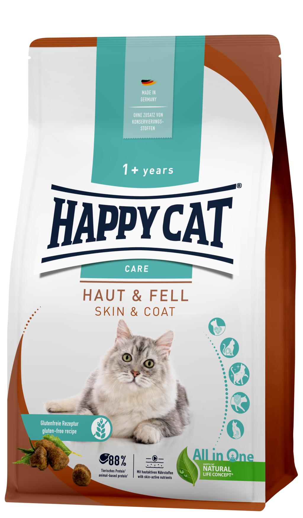 Fell. Happy Cat Sensitive Haut & Fell wurde speziell für hautsensible Katzen entwickelt.